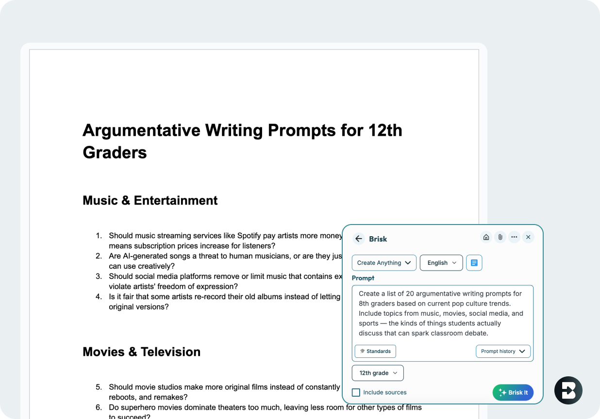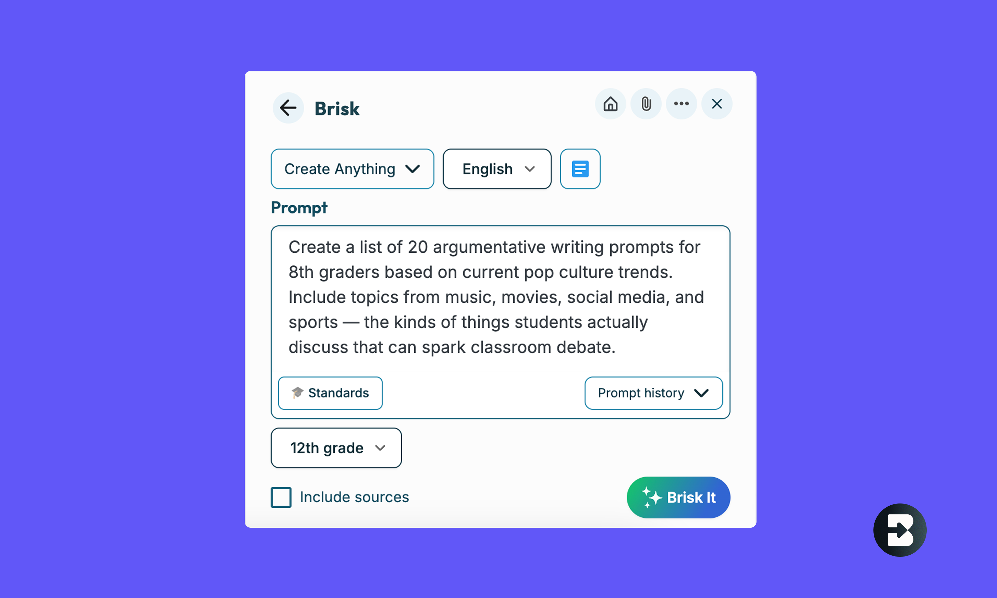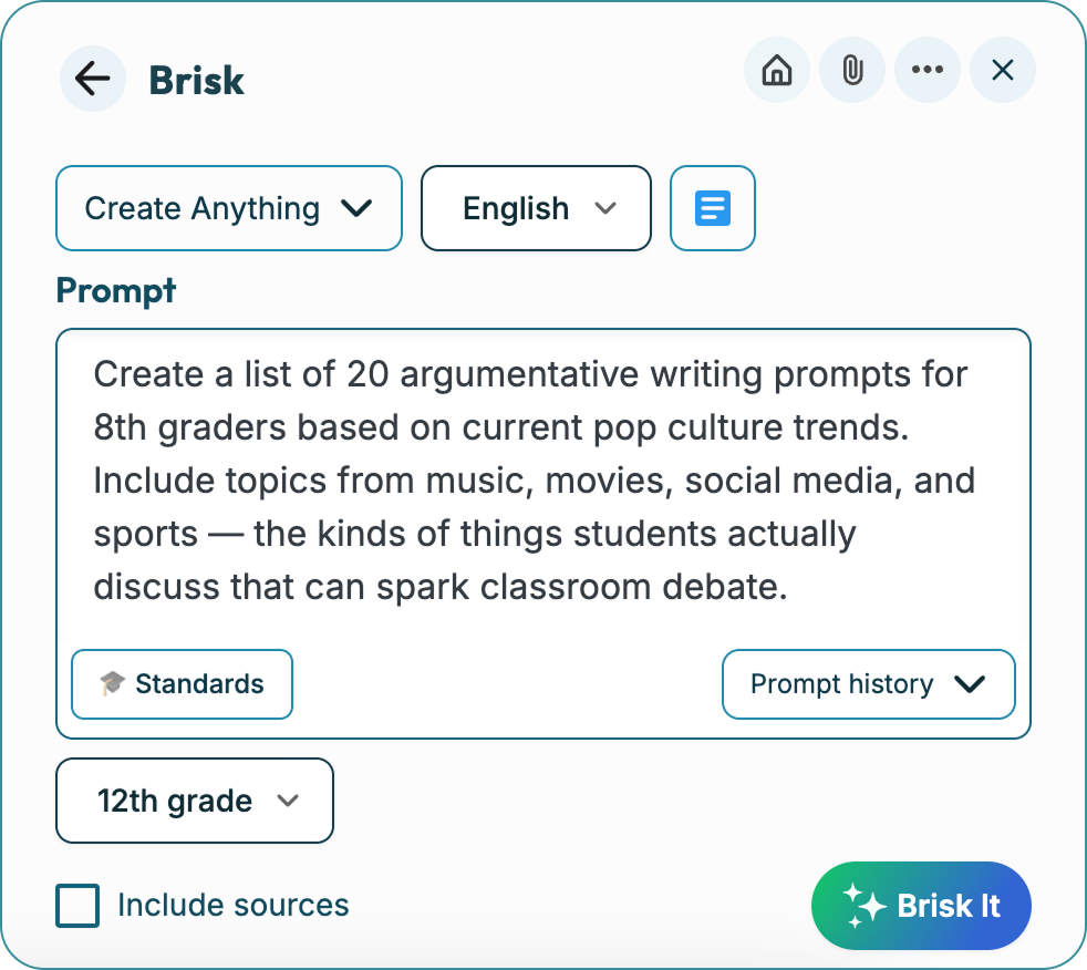 Every resource is tailored to meet your teaching goals. If Brisk's first creation isn't quite what you wanted, Brisk offers options to refine your output until it's perfect.