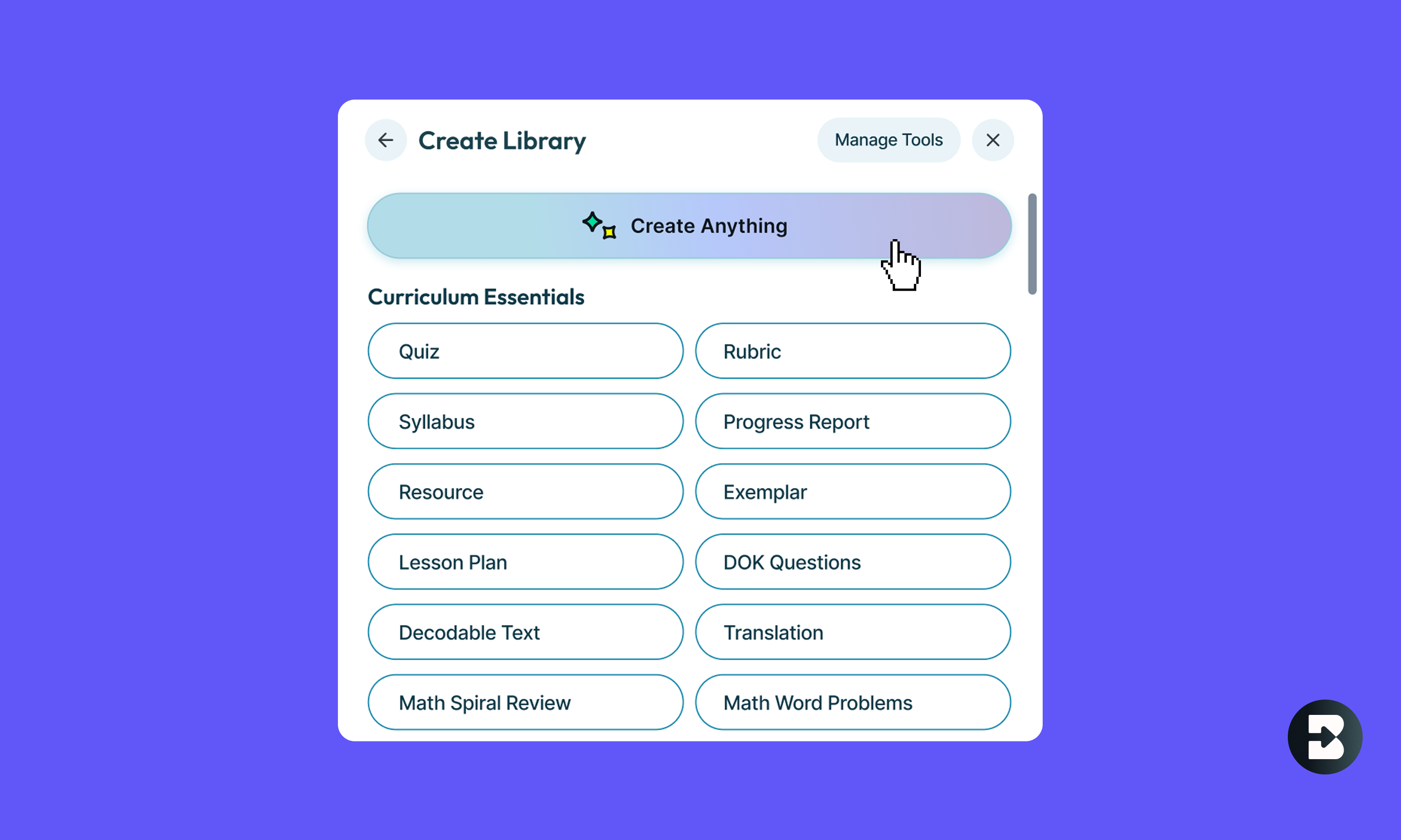 Unlike generic tools, this one doesn’t need endless rephrasing. Our Create Anything tool is built to deliver admin-, teacher- and student-ready content instantly.