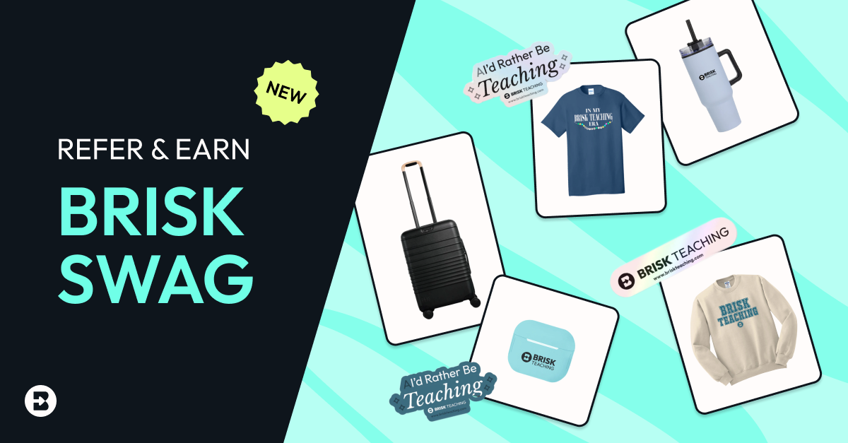 We launched our very first Brisk Rewards Program, a new way for teachers to earn swag just by sharing Brisk. When someone signs up through your link, you earn a point. At ten points, you unlock the Brisk Rewards Store filled with exclusive merch, classroom goodies, and fun surprises. Get started today!