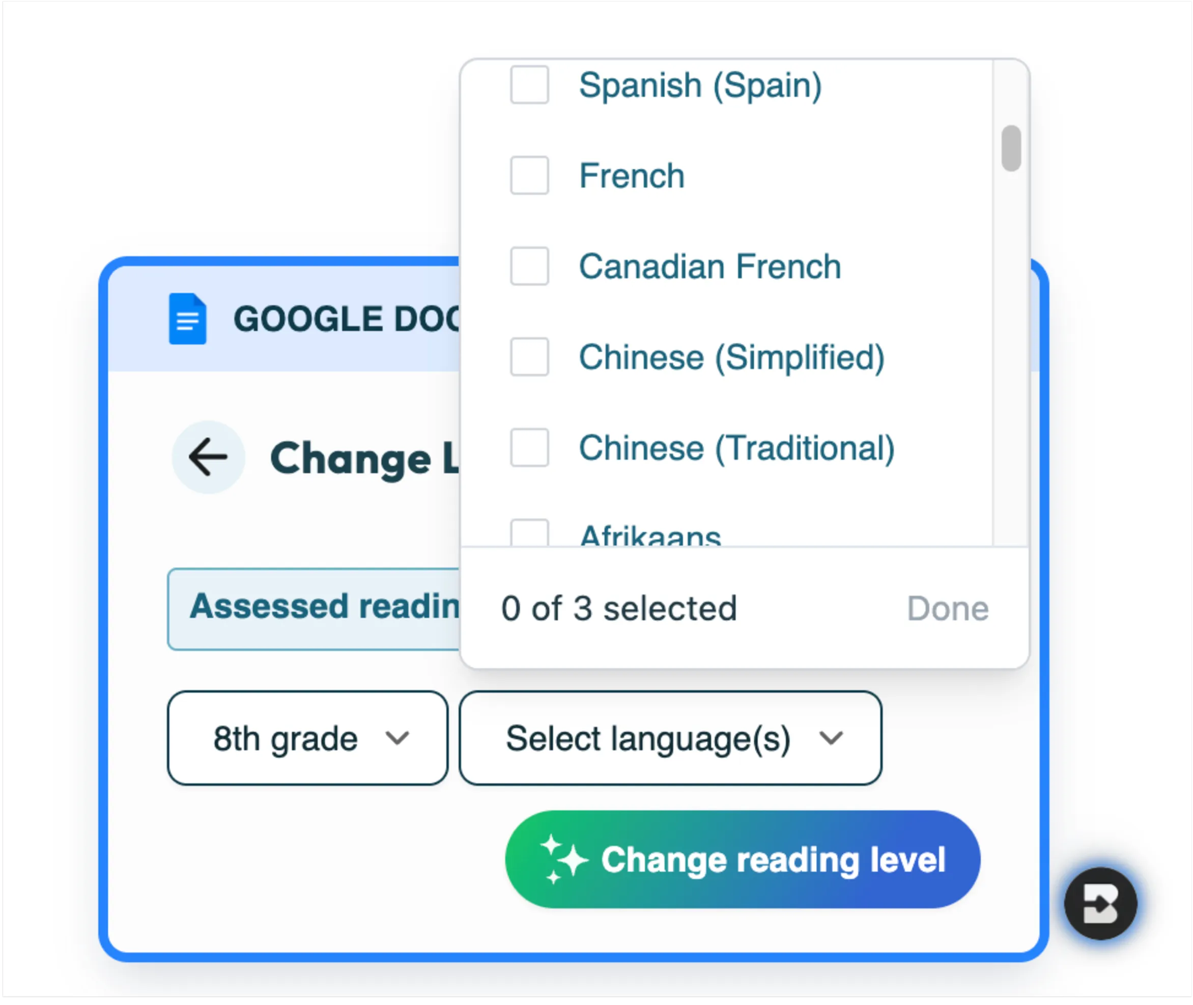 Helping every student access grade-level content shouldn’t take all day. Brisk does it for you - in one click - with our AI Text Leveler Tool and AI Translate Text Tool.