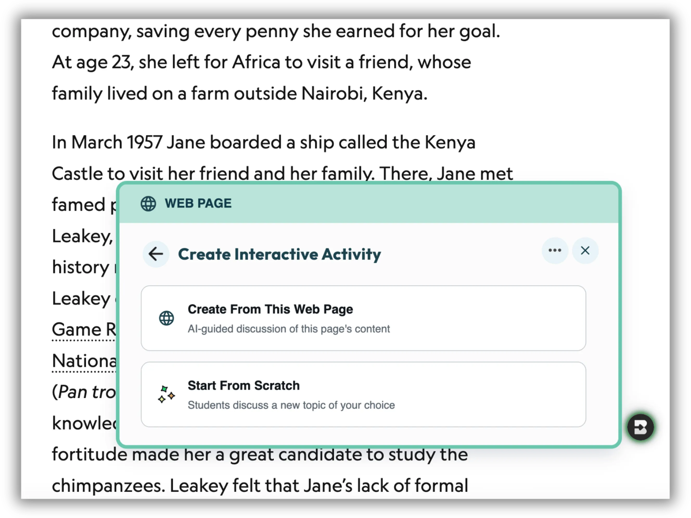 Take any resource, activity, article, video, image, or lesson and create an engaging AI powered learning experience for your students — in seconds.