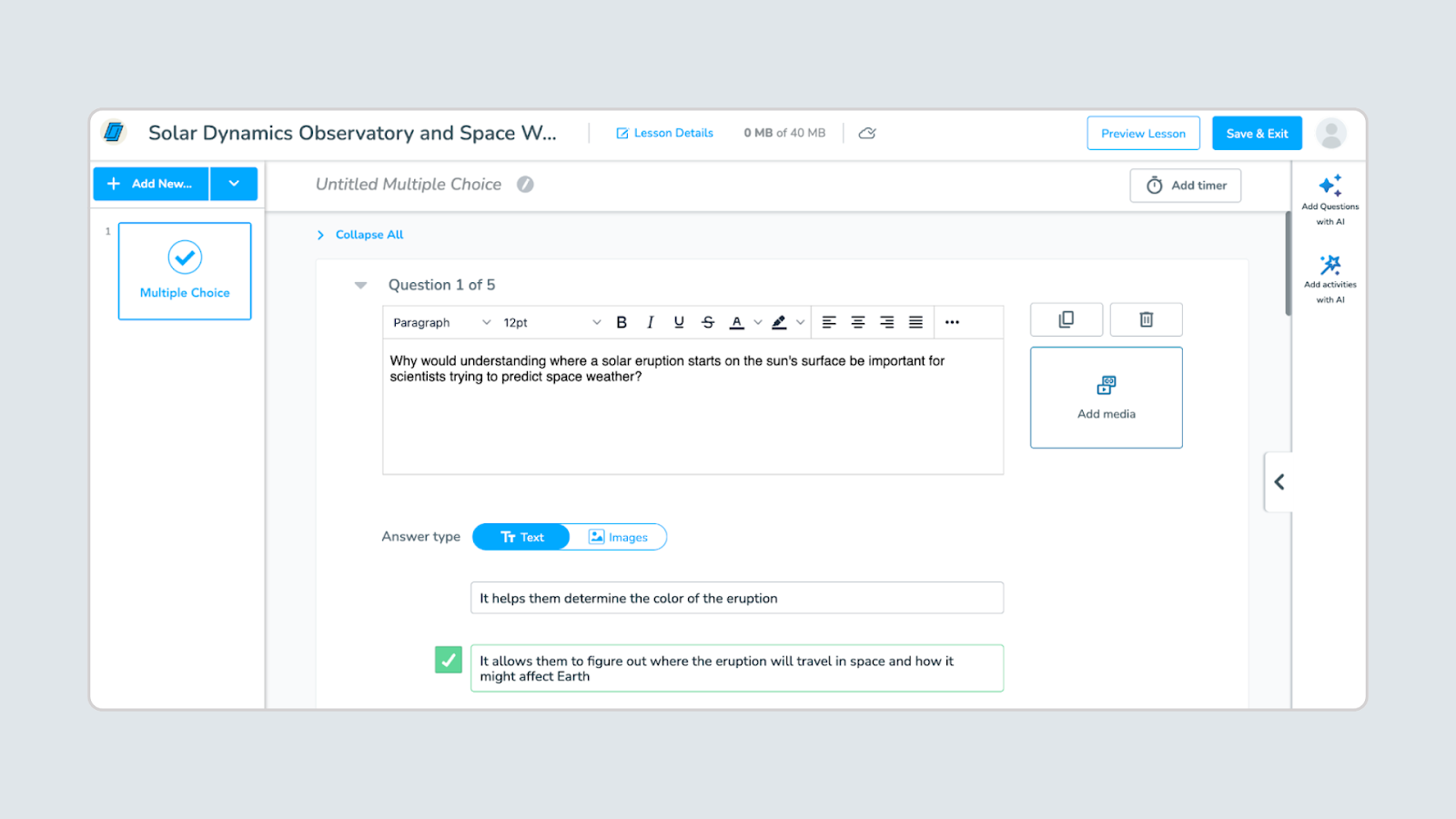 Use Edit Template to adjust the whiteboard students will receive. Upload images, add visual elements, or refine the question so expectations are clear and aligned to your lesson.