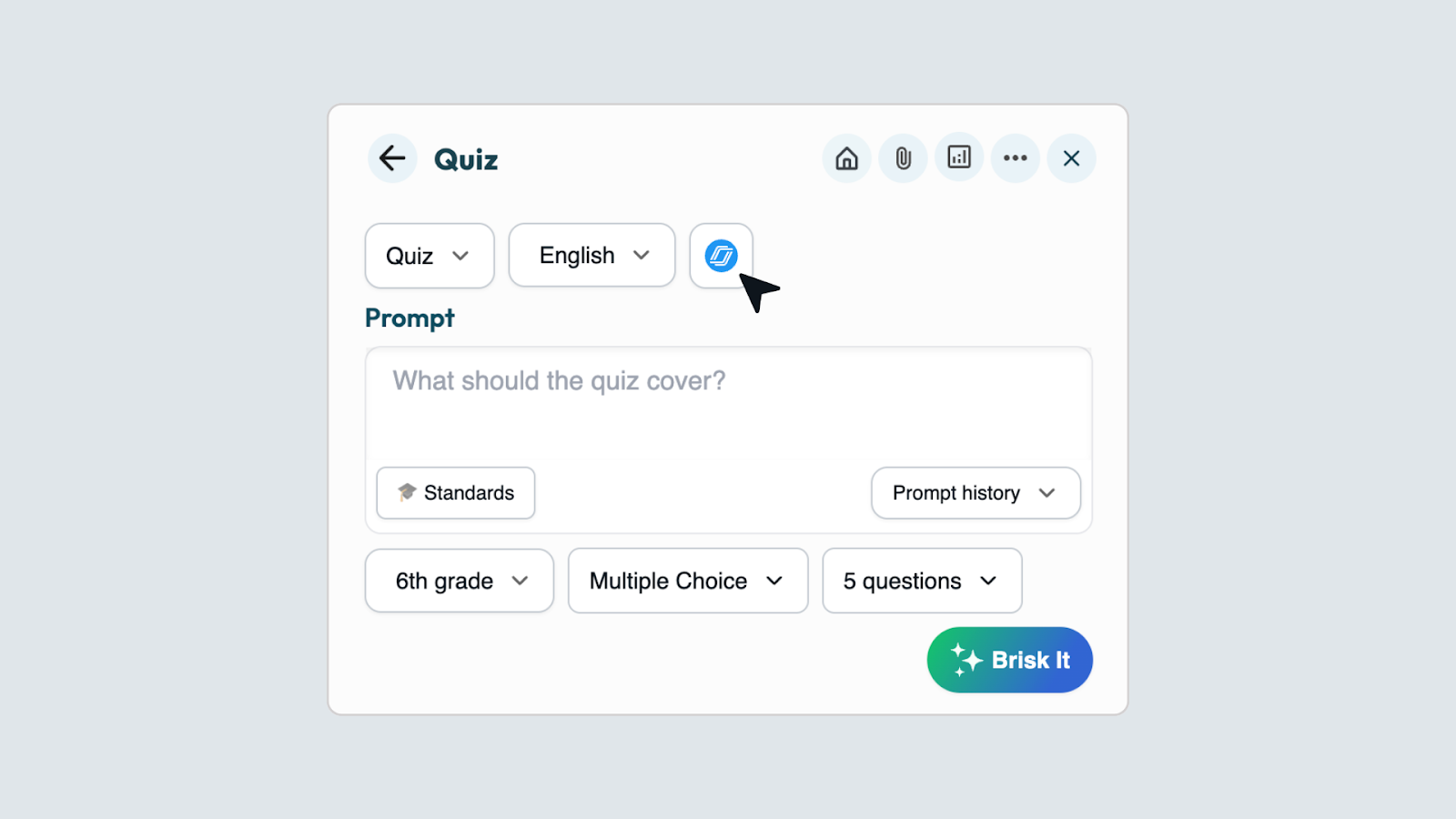 Adjust grade level, standards, language, and question count. Then, Brisk It!