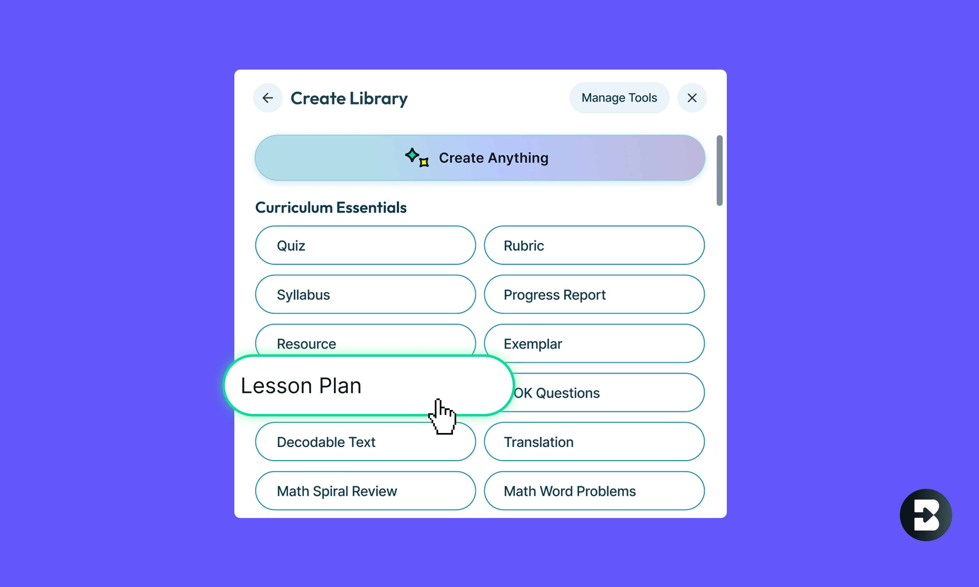 Leave the lesson planning busywork to us, so you can focus on what you do best — inspiring your students. Be as creative as you want and let your ideas run wild with our lesson plan generator.